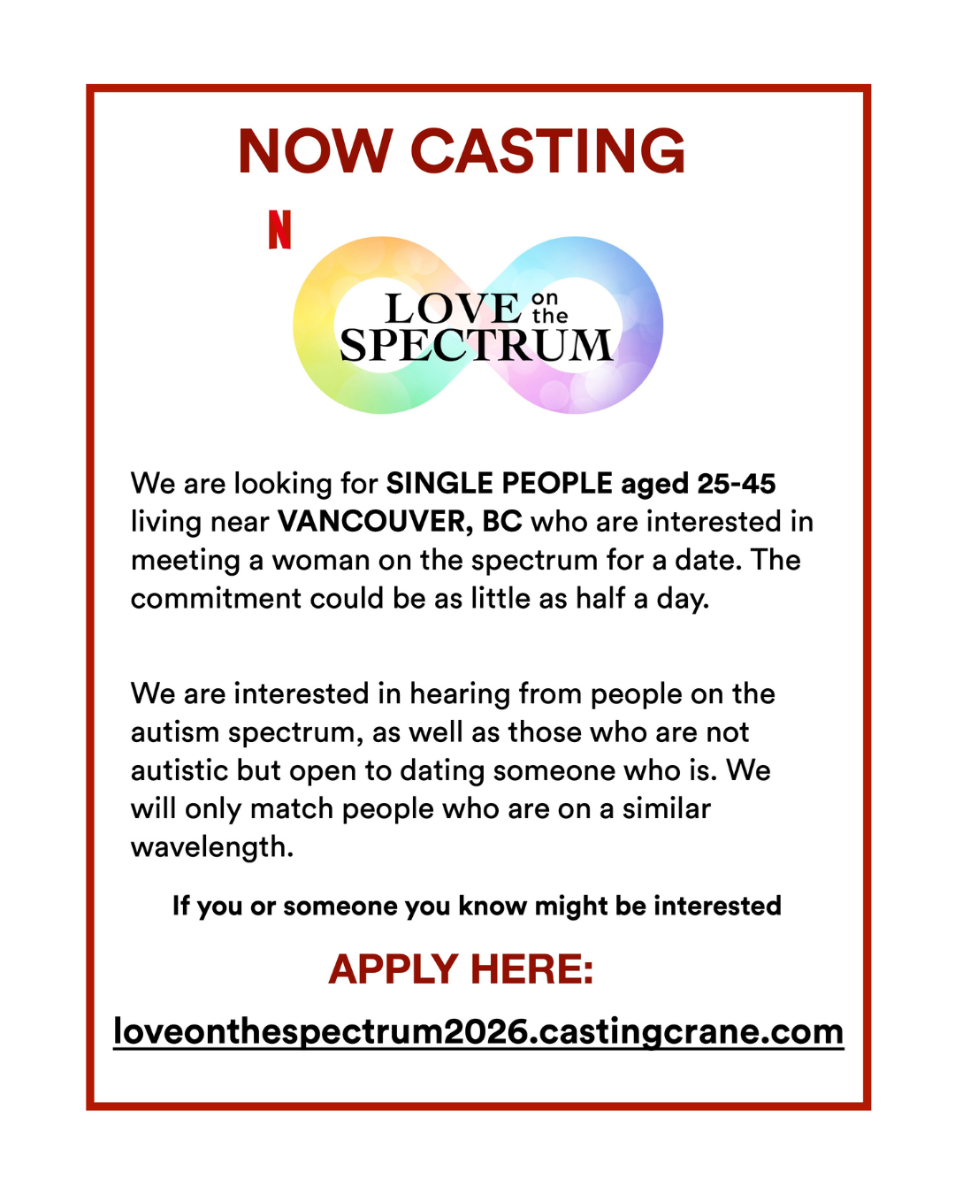 Below is a courtesy post for Love on the Spectrum, which is now casting in Vancouver.